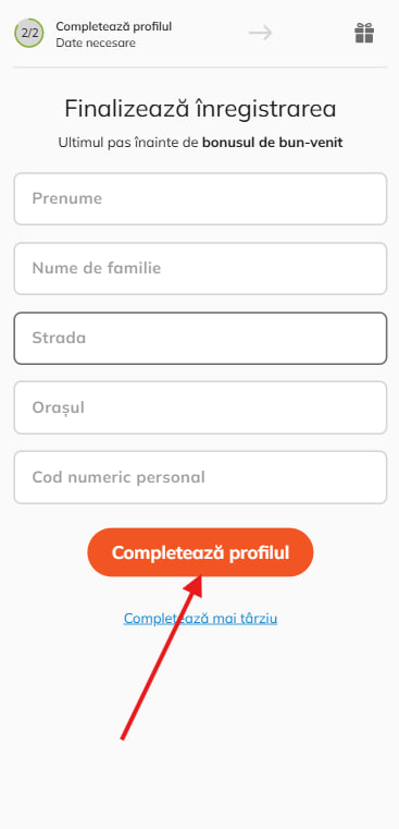1. Dacă ai un cod bonus, dă click pe link și completează câmpul cu codul pe care l-ai primit.